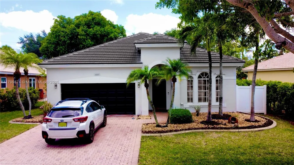 This expansive 2,010 S/F residence is quietly nestled in a beautifully maintained child friendly gated community with 24/7 security. It's open floor plan concept encompasses the ideal living space for family and entertainment. Stunning and very spacious kitchen offers solid wood cabinets, SS appliances & quartz countertops. Well appointed master bedroom with ensuite bathroom has both a shower and tub with elegant cabinetry and double sinks. A generous extra room can serve many purposes. The exterior is tastefully landscaped with paver driveway and a large paver back patio completely fenced in with the benefit of a green area directly behind the property all within the best school districts in all of Broward. Flat concrete roof only 3 years old, property is in top notch turn key condition!